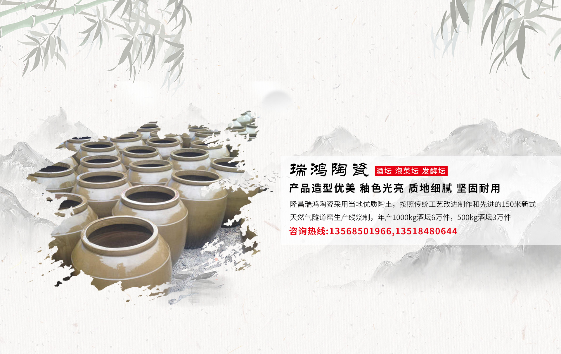 隆昌瑞鴻陶瓷有限公司坐落于內(nèi)江-隆昌,處于隆昌盛名優(yōu)質(zhì)陶泥的中心地帶,地理?xiàng)l件優(yōu)越,交通條件好,風(fēng)景秀麗。在傳承產(chǎn)業(yè)的基礎(chǔ)上,科學(xué)技術(shù)條件下應(yīng)運(yùn)而形成的。隆昌土陶產(chǎn)品有著600多年的制陶歷史,得天獨(dú)厚的陶泥資源工藝傳承,使隆昌陶泥得以進(jìn)步發(fā)展。隆昌瑞鴻陶瓷有限公司采用當(dāng)?shù)貎?yōu)質(zhì)陶土,按照傳統(tǒng)工藝改進(jìn)制作和先進(jìn)的150米新式天然氣隧道窯生產(chǎn)線(xiàn)燒制,年產(chǎn)1000kg酒壇6萬(wàn)件,500kg酒壇3萬(wàn)件,產(chǎn)品造型優(yōu)美,釉色光亮,質(zhì)地細(xì)膩,堅(jiān)固耐用,改變制陶工藝,取而代之的是隧道窖生產(chǎn),機(jī)械化制還,天燃?xì)忪褵に?。此方法?duì)提高產(chǎn)量、保證質(zhì)量、降低能耗、保護(hù)環(huán)境等方面有著十分重要的作用。酒缸,酒壇等系列產(chǎn)品遠(yuǎn)銷(xiāo)山東,湖南,湖北,云貴川等地。并得到景芝,茅臺(tái),五糧液,劍南春,枝江等知名品牌企業(yè)的大力支持和厚愛(ài)。